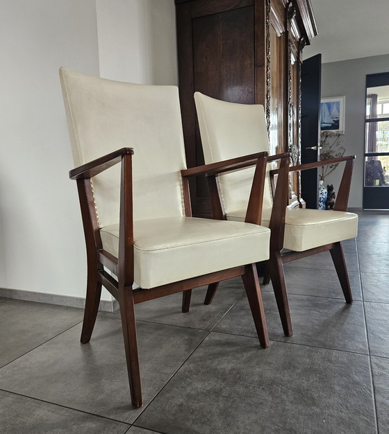 Varias butacas originales Tijsseling Nijkerk. En buen estado, tapizadas en piel Skai color crema. Estas sillas aportan un toque de estilo a cualquier interior. Perfectas para los amantes del diseño retro.