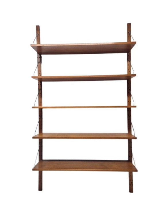 Sistema de estanterías de teca, con la inscripción "Hecho en Dinamarca", 1960.