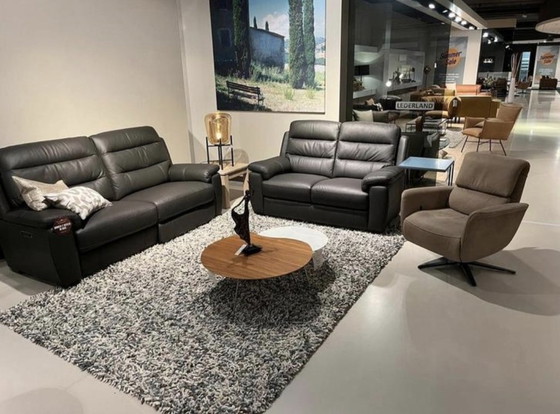 Imagínese: una tarde de relax en estos elegantes sofás Alinda, perfectos para su sala de estar. Este conjunto incluye un sofá de 2 plazas y uno de 2,5 plazas, ambos tapizados en lujosa piel negra. Su diseño moderno y su comodidad los convierten en un elemento esencial para cualquier interior.