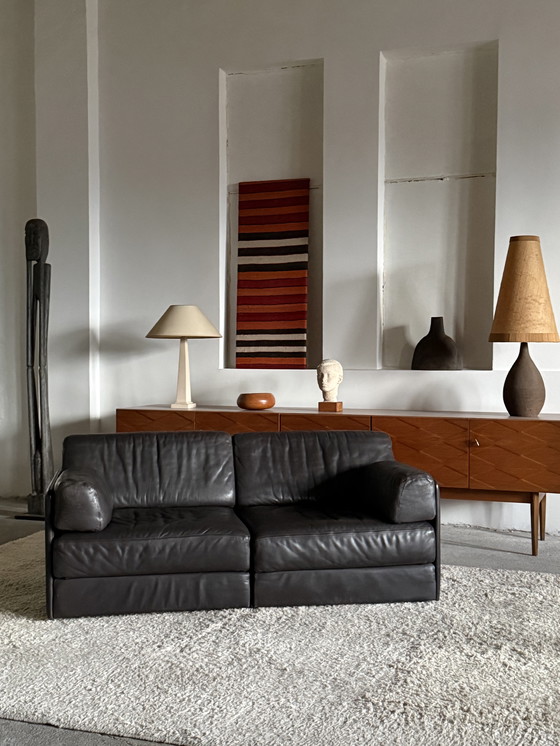 Sofá cama DE SEDE DS-76 de 2 plazas, piel de búfalo, marrón oscuro, Suiza, años 70