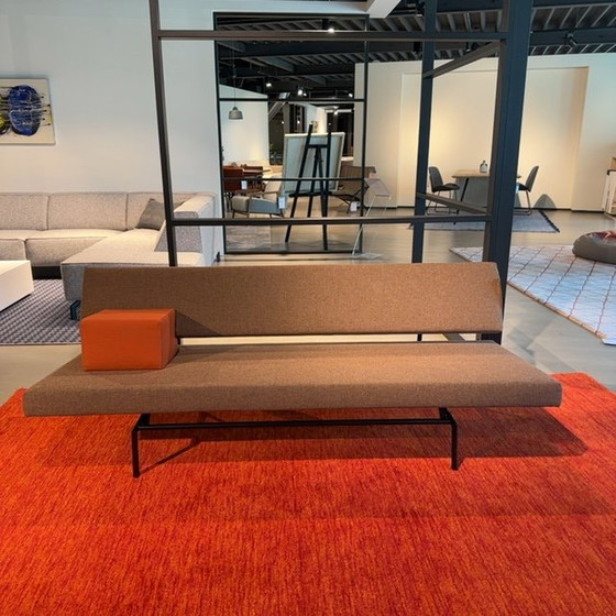 Sofá cama Spectrum BR 02.9 + Reposabrazos BA 02 - An 192 x Pr 82/100 x Al 70 cm - An 30 x Pr 46 x Al 21 cm - Sofá cama de tela Tonica 231 - Reposabrazos de tela Divina 3 color 552 - Estructura epoxi negra