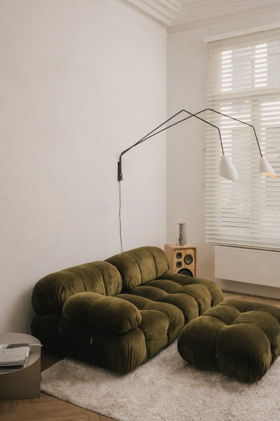 Sofá Camaleonda de B&B Italia – 2 módulos + otomana – Terciopelo verde oliva – Como nuevo