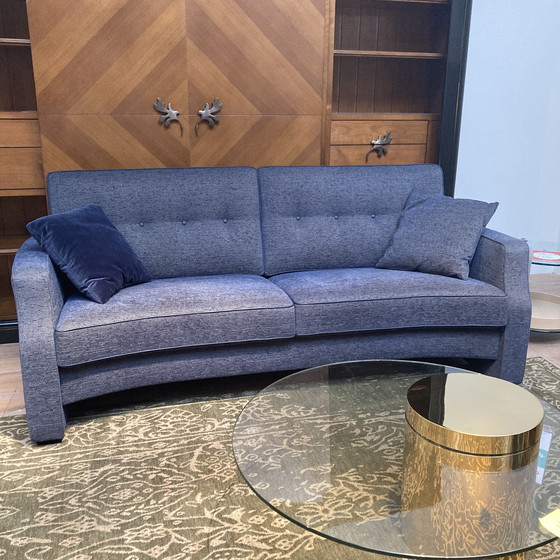 Sofá de 3 plazas Vidato Caletta. Sofá de 3 plazas de alta calidad, fabricado íntegramente en los Países Bajos, con muelles interiores, ribete de piel y dos cojines decorativos. Los asientos son regulables en profundidad. Tapizado en resistente tela Romo.
