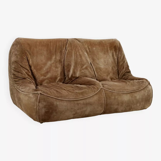 Dimensiones: Alto 78 x Ancho 160 x Profundidad 90 Color: Marrón Materiales: Terciopelo Estilo: Sofá de diseño de Bernard Govin, Atelier Dunlopillo, Francia, circa 1970. Modelo excepcional. Totalmente original. Telas con dos pequeños agujeros y un ligero desgaste visible en el asiento de terciopelo, una costura visible en la parte inferior del asiento, una parte apenas visible... terciopelo ligeramente desgastado. Muy cómodo. Diseño de la era espacial.