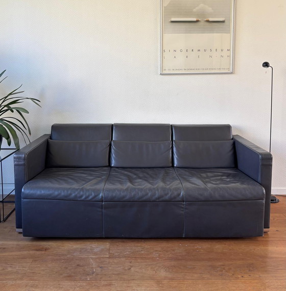 Este sofá de cuero Jori Kamasitra de la década de 1980 es un magnífico ejemplo de diseño atemporal. Tapizado en cuero gris antracita de alta calidad y con cuatro cojines lumbares, tiene capacidad para tres a cinco personas. Su diseño elegante y minimalista se integra a la perfección tanto en interiores modernos como clásicos. Cómodo y duradero, es ideal para el día a día. El respaldo se puede ajustar a dos alturas: baja (67 cm) y alta (83 cm). Un verdadero punto de atracción para su salón.