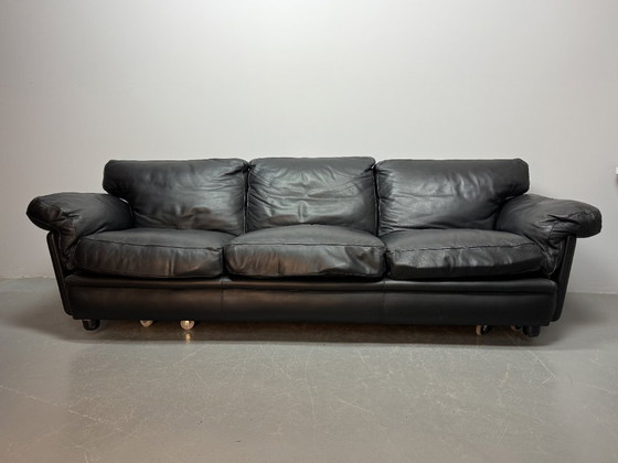 Sofá de cuero negro de alta calidad de 3" 'Poppy' de Poltrona Frau, de mediados de siglo, década de 1970.