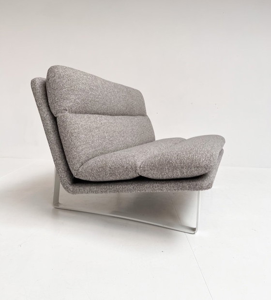 Un icono del diseño clásico, este sofá de dos plazas de Kho Liang Ie de la década de 1960. Retapizado en una tela de tapicería gris áspera. El cómodo sofá Artifort reposa sobre una estructura de metal blanco. Esta estructura, al igual que su sobria simplicidad, es muy característica del sofá. Otro detalle distintivo es que los cojines sueltos del respaldo y del asiento están hechos de una sola pieza. ¡Una pieza única de diseño holandés!