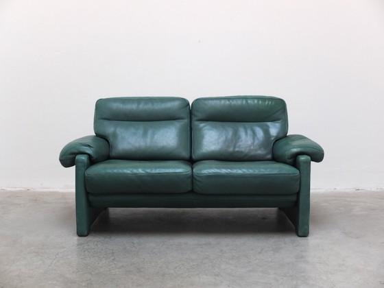 Sólido sofá de 2,5 plazas fabricado por De Sede en Suiza. Fabricado en piel de búfalo de la más alta calidad en un color verde único y original. Proviene del primer propietario y se mantiene en muy buen estado. Calidad indestructible. También disponemos del sofá de 3 plazas a juego.