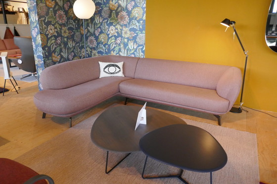 Sofá esquinero Leolux Flint. Sofá esquinero con hermosas curvas, procedente de los Países Bajos. Detalles del producto: * Marca: Leolux * Modelo: Flint * Tapizado: Apollo 12, Venus * Base: Epoxy, seda gris topo * Dimensiones: An. 2725 x Pr. 197 x Al. 76 cm * Altura del asiento: 43 cm