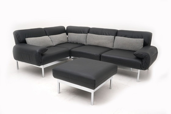 Sofá esquinero Rolf Benz Plura 380, sofá, taburete, cuero, negro