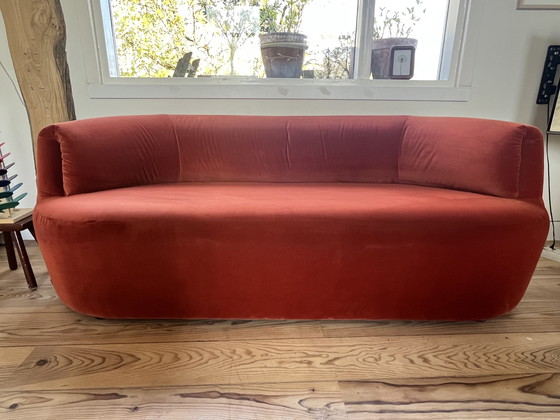 Precioso sofá de Fèst Amsterdam, modelo Huf, en el impresionante color Royal Saffron. Un tono rojo anaranjado intenso, como el del óxido terracota. Le dará a tu sala de estar un toque de diseño al instante.