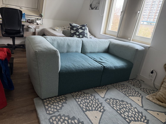 En uso desde hace dos años y medio. Sin manchas ni desperfectos. Sofá modular (compuesto por dos secciones de asiento unidas).