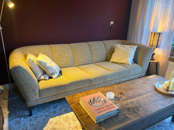 Precioso sofá Montèl Futura de 3,5 plazas en estado casi nuevo. Este sofá de diseño tiene solo 2 años y cuenta con una elegante tela jaspeada y patas de metal negro. Con unas dimensiones de 251 x 74 x 99 cm (ancho x alto x profundidad), una profundidad de asiento de 63 cm y una altura de asiento de 44 cm, este sofá ofrece una comodidad óptima y se integra a la perfección en cualquier interior.