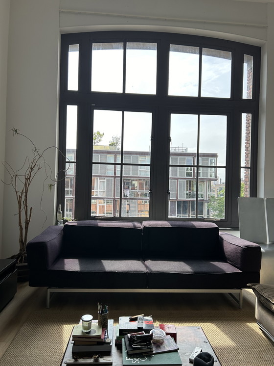 Este elegante sofá Reef de 2,5 plazas, diseñado por Piero Lissoni, combina a la perfección estilo y comodidad. Cuenta con una tapicería de lana extraíble en un refinado tono púrpura lavanda, complementada con una robusta estructura de metal con elegantes patas gris plateado. Con unas medidas de 235 x 87 x 70 cm, este sofá ofrece amplios asientos a la vez que conserva su estética moderna. Ideal para espacios contemporáneos, se vendió originalmente por 7500 €. A pesar de algunos signos de desgaste, se mantiene en buen estado, listo para realzar tu hogar con su diseño atemporal. Voy a tener un gato, así que no quiero que arruine esta belleza.