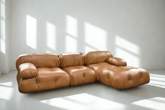 Diseño icónico de Mario Bellini de 1970 (fabricado entre 1970 y 1979): la versión de primera generación más hermosa que se pueda imaginar. Cálido color camello coñac, piel de primera calidad y pátina.