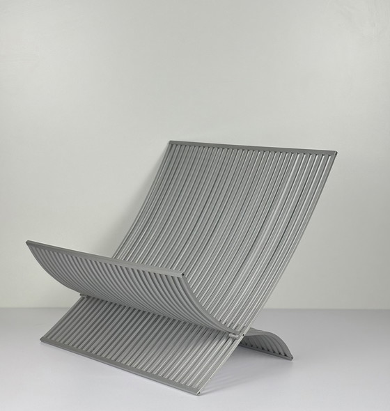 Soporte para libros y revistas UMBRA de lamas de aluminio cepillado. Plegable diseñador MICHELLE IVANKOVIC