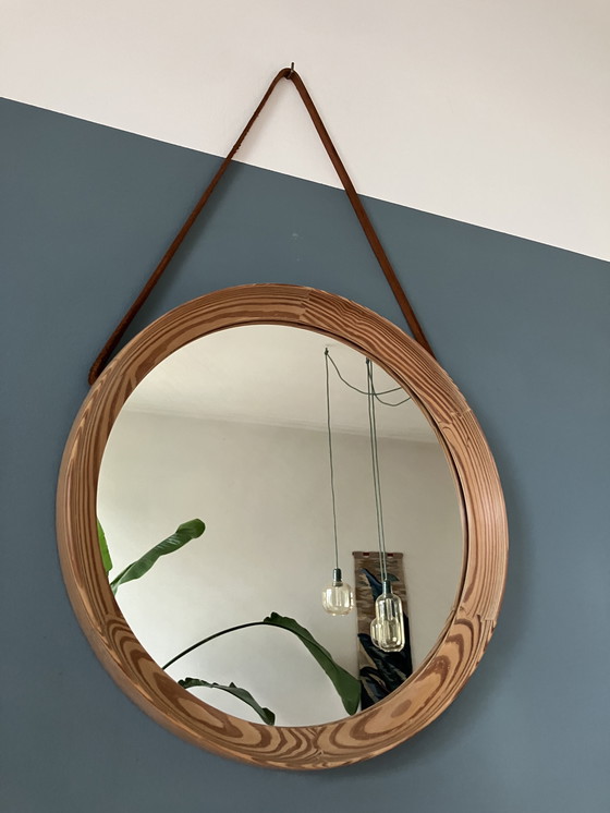 El espejo está hecho de pino macizo con sus características juntas.