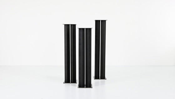 Base de pedestal modelo "estrella" en metal patinado. Diseñada por Franck Robichez y firmada para Dritsh. Para cualquier consulta, ofrecemos soluciones a medida. Precio unitario. Diseñador: Franck Robichez. Productor: Dritsh. Modelo: Space. Dimensiones: Ancho 25 cm x Fondo 25 cm x Alto 110/11/120 cm. Materiales: Acero. Color: Gris Negro Patinado. Estado del artículo: Muy buen estado. Ligero desgaste por el uso y la antigüedad (ver fotos). NOTA: Las superficies metálicas pueden presentar variaciones de color y pequeños defectos. Esta es una propiedad del material que no se puede evitar por completo y constituye la característica única de cada pieza. La pieza que se le vende puede ser diferente a la que se presenta en este anuncio. Si tiene alguna pregunta o necesita más fotos, no dude en contactarme. Para obtener un presupuesto de transporte, contácteme. Traducido con DeepL.com (versión gratuita).