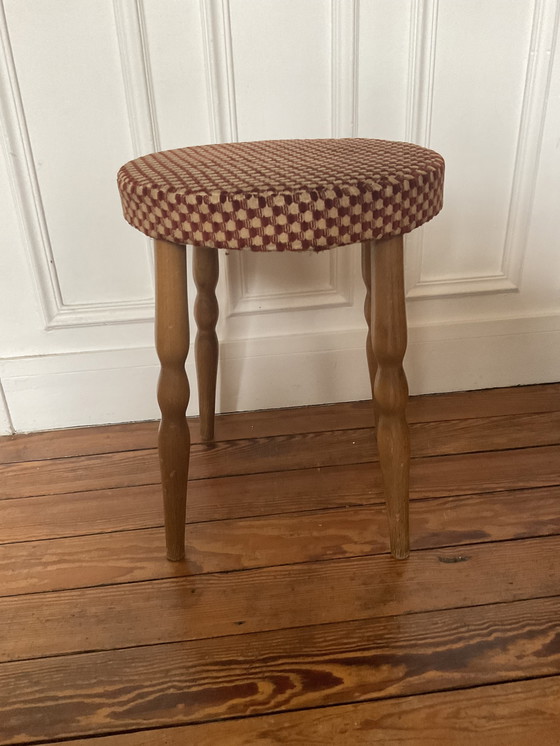 Taburete Baumann excepcional en muy buen estado, con asiento de terciopelo original, típico y reconocible de la casa Baumann, y patas torneadas. En muy buen estado. También puede usarse como mesa auxiliar. Dimensiones: 46 x 35 x 35 cm.