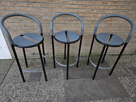 Tres taburetes de bar vintage Fritz Hansen Pelikan Design, diseñados por Niels Gammelgaard en 1992.