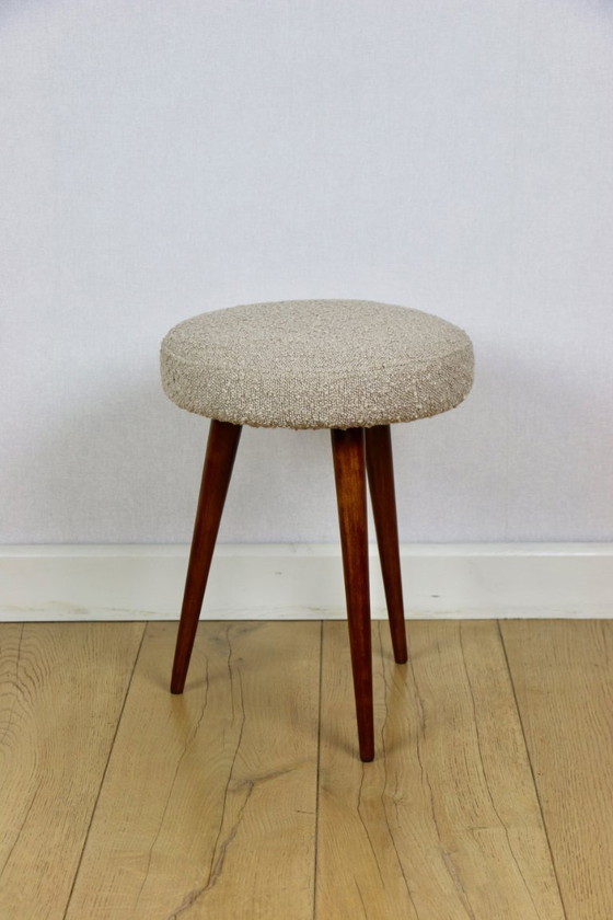 Presentamos un encantador taburete redondo que combina a la perfección elegancia y funcionalidad. Este taburete de bouclé beige es un testimonio de un diseño refinado, aportando un toque sutil y sofisticado a cualquier interior. Su tono neutro garantiza una integración perfecta con diversos estilos de decoración, mientras que la tela de bouclé añade textura y calidez a tu espacio. El taburete está completamente restaurado.