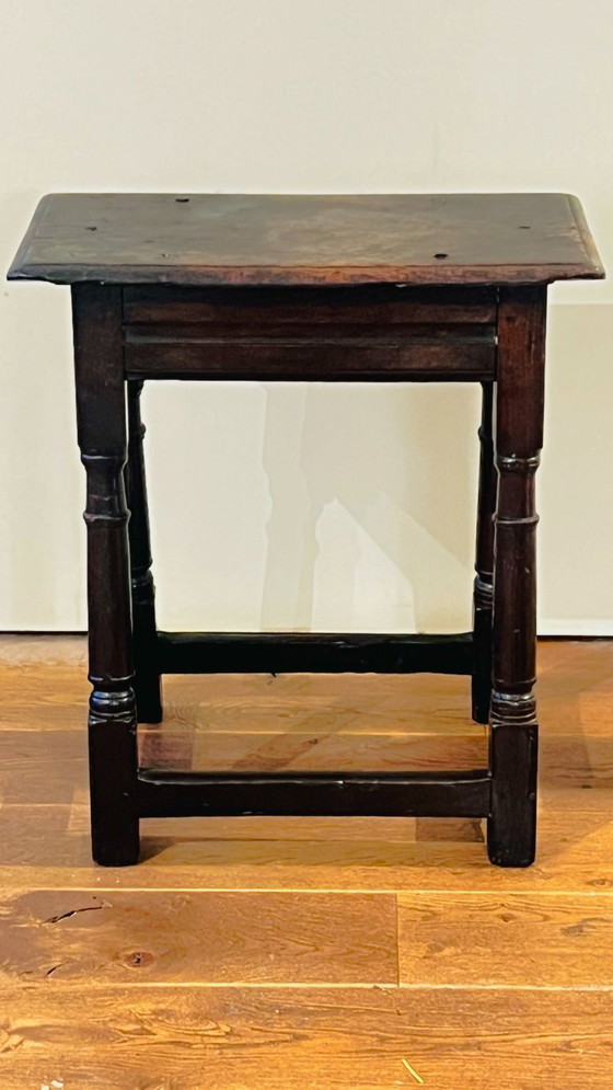 Este taburete o mesa auxiliar de roble inglés antiguo añade un toque de encanto clásico a cualquier estancia. El robusto roble irradia una elegancia atemporal y es perfecto tanto para uso funcional como decorativo. Ideal como asiento adicional o como elegante mesa auxiliar.