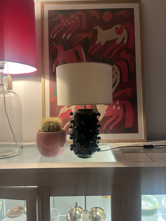 Eleve su interior con esta llamativa lámpara de sobremesa, que presenta una exclusiva base de color turquesa oscuro adornada con pomos texturizados. El acabado de piedra brillante de la lámpara capta la atención, ofreciendo una sofisticada mezcla de tonos azules y verdes que añaden profundidad a cualquier habitación. Complementada con una pantalla blanca inmaculada, esta lámpara mide 50 cm de alto y 30 cm de diámetro, lo que la convierte en una pieza de acento perfecta para su salón. El cable está diseñado para regular la intensidad de la luz, lo que le permite crear el ambiente perfecto.