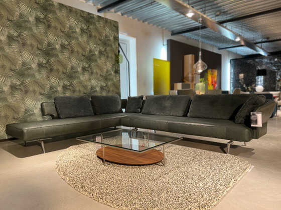 Modelo de exposición: Combinación de sofás esquineros Tamu de Molinari Diseño: Sofá esquinero: Estructura: Piel Plume, color petróleo Cojines del respaldo: Piel nobuk, color petróleo Patas de aluminio brillante Dimensiones: 234 x 260 cm Profundidad del asiento: 56 cm Altura del asiento: 43 cm Cojín para brazos con correa: Piel nobuk, color petróleo Dimensiones: 42 x 42 x 11 cm El precio incluye el sofá esquinero con cojín para brazos __ Inspirado en elementos modernos de la arquitectura japonesa, Frans Schrofer utiliza materiales puros, formas refinadas y elementos estilísticos lujosos. Al reducir las formas a su esencia, diseña elementos que crean un abrazo acogedor e invitan a la comodidad. El sofá Tamu, elaborado con técnicas artesanales de la familia Molinari, ofrece transparencia y comodidad al más alto nivel de calidad.