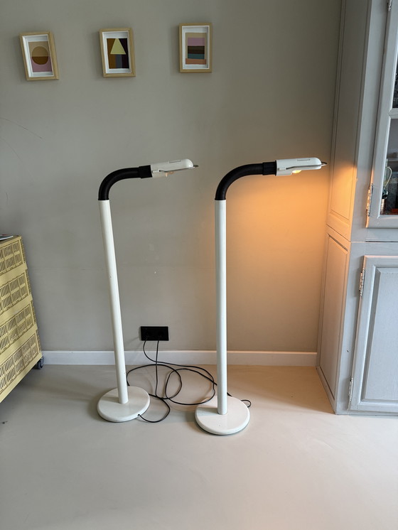 Lámpara italiana de Targeetti Sankey de los años 60/70 -La lámpara se puede utilizar tanto totalmente vertical como con el cuello doblado - Blanco hueso con negro.