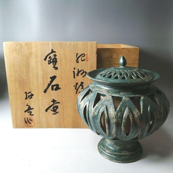 Tarro de cerámica japonés Kishu Ware con marca de agua de Sufo Kangawa