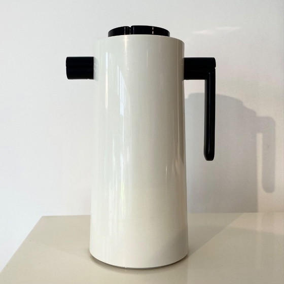Elegante cafetera/termo de Pierre Cardin, década de 1970. Su diseño, inspirado en elementos florales, combinado con líneas elegantes y una paleta de colores en blanco y negro, le confiere un estilo japonés reconocible y atemporal. La cafetera se encuentra impecable y en perfecto estado.