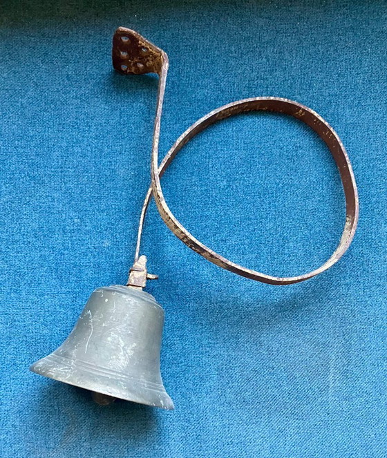 Timbre antiguo de bronce. Incluye soporte de pared.
