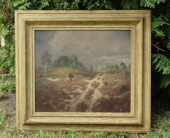 Un motivo de tormenta de gran calidad y belleza de un pintor muniqués de 1949. Dramáticos contrastes de color y profundidad magistral del espacio.