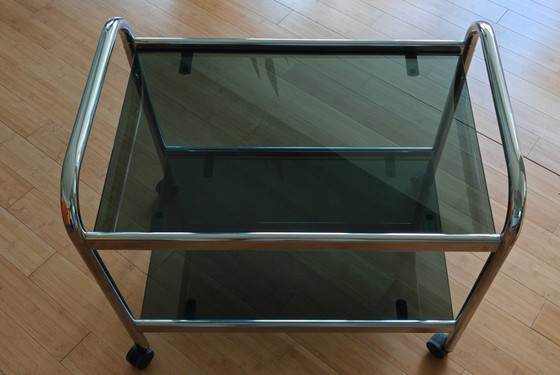 Mesa de servir/trolley cromado/tablero de cristal ahumado ; Ikea General Voss rull board de 1985 (un Ikea Originals - soy el 1er propietario); 75*50 por 70 de alto;