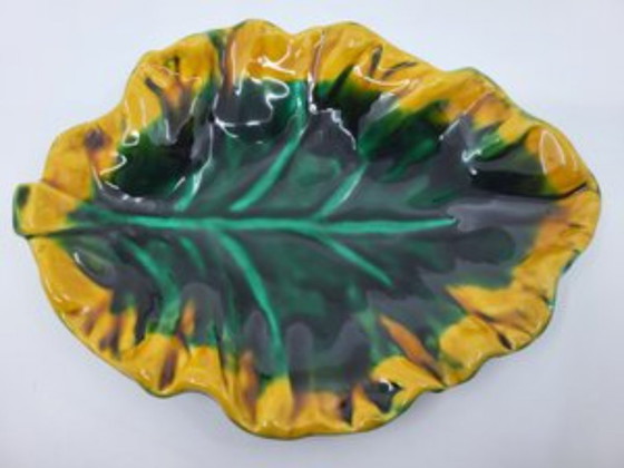 Este elegante cuenco o caddy de bolsillo de cerámica de Vallauris, emblemático de la Costa Azul francesa de los años 70, es mucho más que un simple objeto: es un auténtico tesoro vintage. Su delicada forma, inspirada en la hoja de vid, evoca naturaleza y refinamiento, mientras que su vibrante tonalidad verde, realzada por los bordes amarillos, le confiere un encanto atemporal que recuerda los días templados y soleados de la Costa Azul.