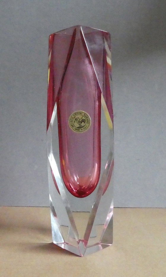 Diese exquisite Vase aus Murano Glas, gefertigt in den 1960er Jahren, ist ein wahres Meisterwerk italienischer Handwerkskunst. Die facettierte Schlifftechnik verleiht der Vase eine elegante und zeitlose Ausstrahlung.