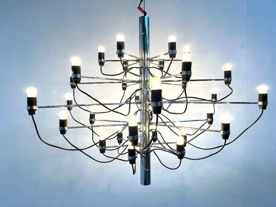 Una rara edición temprana de una lámpara de araña cromada Arteluce de 1958.