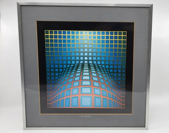 Descubra una obra icónica de Victor Vasarely, pionero del Op Art del siglo XX. Esta impresión offset enmarcada, titulada "Composición Óptica", encarna el enfoque vanguardista de Vasarely, invitando al espectador a una experiencia visual inmersiva e interactiva. Mediante ilusiones ópticas, esta pieza trasciende la simple representación visual para ofrecer una reflexión estética única.
