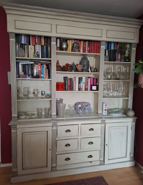 Se ofrece a la venta: Un aparador de estilo rústico, muy espacioso y con mucho encanto, con un acabado clásico en blanco decapado. Este impresionante aparador tiene 30 años y se conserva en un estado impecable, con un aspecto muy usado, que encaja a la perfección en interiores rústicos, minimalistas o clásicos.