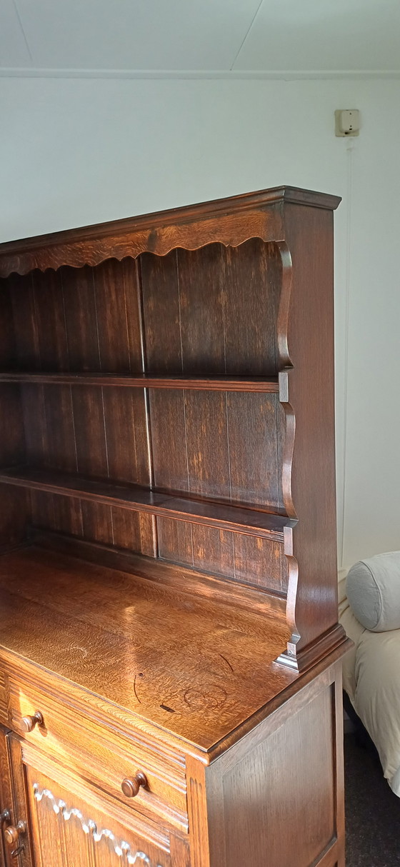 Este precioso aparador inglés de peltre irradia elegancia clásica y es el complemento perfecto para cualquier interior tradicional. Con sus ricos tonos marrones y su refinado acabado, este aparador ofrece no solo una solución de almacenamiento funcional, sino también un elemento estético que embellecerá su hogar.