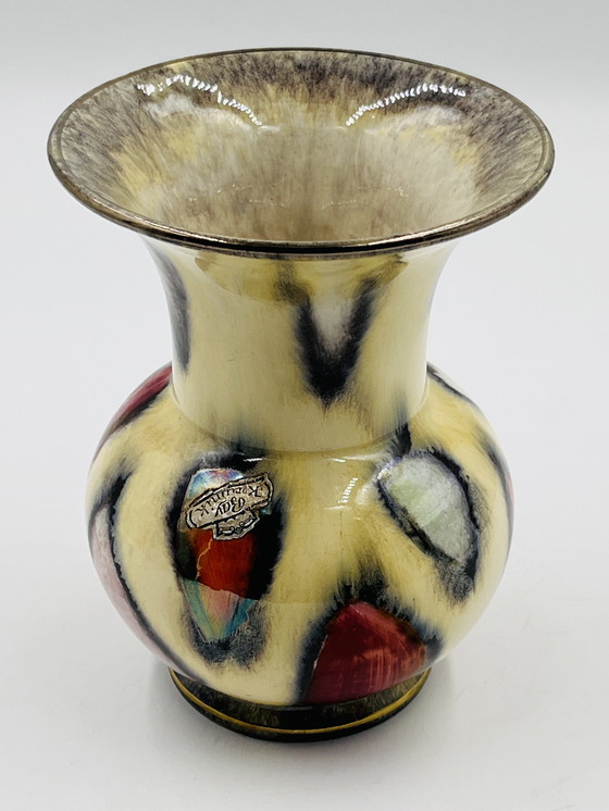Retroceda en el tiempo con este magnífico jarrón Bay de la década de 1950, un verdadero testimonio de las habilidades de la cerámica de Alemania Occidental. Su vibrante esmalte multicolor presenta una cautivadora mezcla de amarillo, rojo y negro, creando un impactante impacto visual que realzará cualquier espacio. - Fabricado en cerámica de alta calidad, este jarrón muestra la reconocida maestría de Bay, un referente en el diseño de mediados de siglo. - Su patrón único y sus colores vibrantes lo convierten en una pieza llamativa, perfecta para añadir un toque de encanto vintage a su diseño interior. - Su elegante forma y suave acabado reflejan el encanto atemporal del estilo moderno de mediados de siglo. Aporte un toque de historia a su hogar con este magnífico jarrón Bay y deje que su belleza inspire su diseño interior.