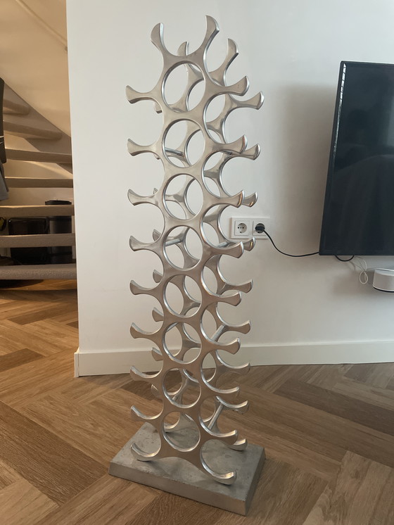 Aumente su colección de vinos con este exquisito botellero Eichholtz, diseñado para albergar hasta 27 botellas. Su diseño elegante y moderno, fabricado en metal de alta calidad, ofrece durabilidad y una estética sofisticada. Su acabado plateado le da un toque de elegancia, convirtiéndolo en el complemento perfecto para cualquier decoración contemporánea.