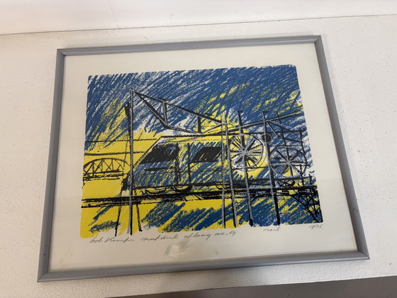 Zeefdruk van kunstenaar Bob Kemper getiteld Rail oplage 69/100 uit 1989