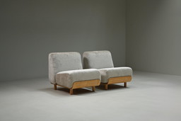 Escritorio vintage de roble restaurado con 2 cajones - Madera color miel y beige suave