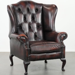 2 sillones Chesterfield de piel de vaca roja flameada de estilo inglés en buen estado