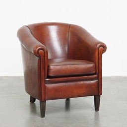 Sillón orejero de piel de oveja con un aspecto lleno de carácter