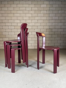 4 Sillas de comedor Leolux Lirio con ruedas de cuero morado