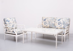 Mesa y sillones italianos de bambú y ratán, años 50, juego de 4