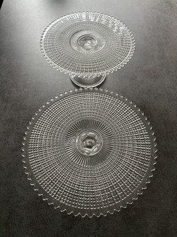 Bandeja de servir vintage de vidrio prensado y metal – Francia, siglo XX