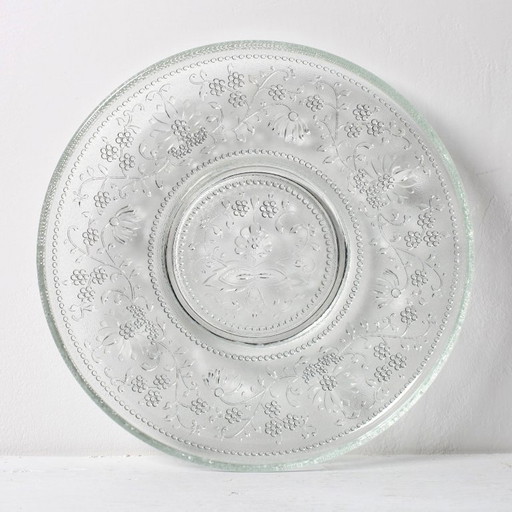 Frutero grande de vidrio prensado vintage / Centro de mesa de vidrio transparente poco común / Italia / Década de 1970